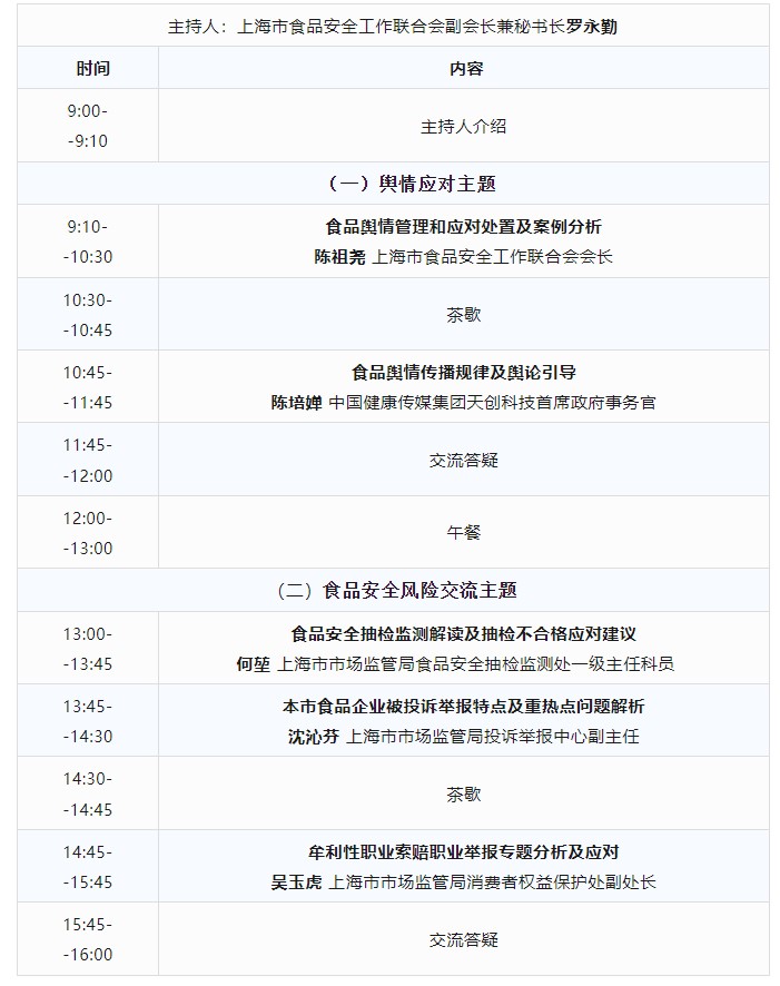 企業(yè)遇到食品抽檢不合格如何應(yīng)對?上海食品類消費投訴有哪些特點?企業(yè)應(yīng)如何及時受理和解決?遇到職業(yè)打假人索賠如何應(yīng)對?企業(yè)發(fā)生食品安全輿情如何應(yīng)對和處置?這些都是食品企業(yè)關(guān)心的重要問題。為此,市食安聯(lián)特舉辦“食品安全風(fēng)險交流與輿情應(yīng)對及案例分析培訓(xùn)會”,邀請上海市市場監(jiān)管局相關(guān)部門負(fù)責(zé)人及有關(guān)專家開展培訓(xùn)和工作經(jīng)驗交流和分享,以幫助食品企業(yè)在食品安全風(fēng)險交流中進(jìn)一步提高應(yīng)對能力?,F(xiàn)將有關(guān)事項通知如下:
