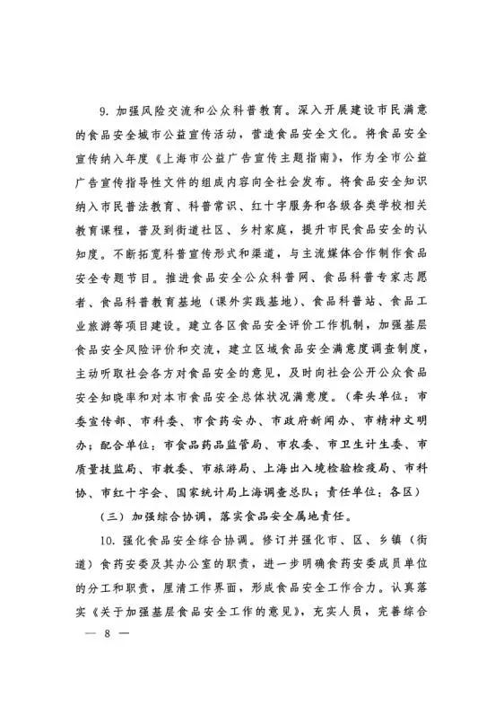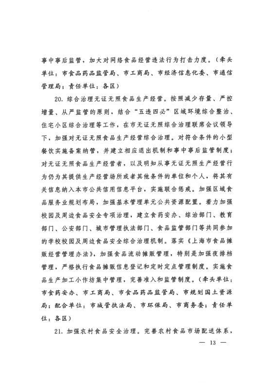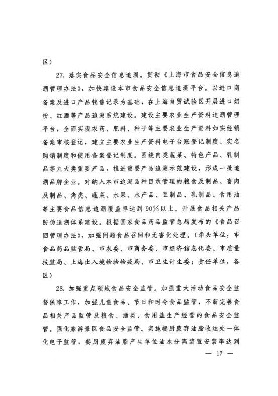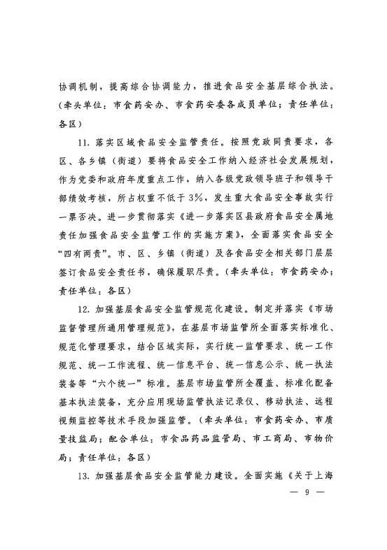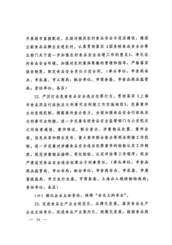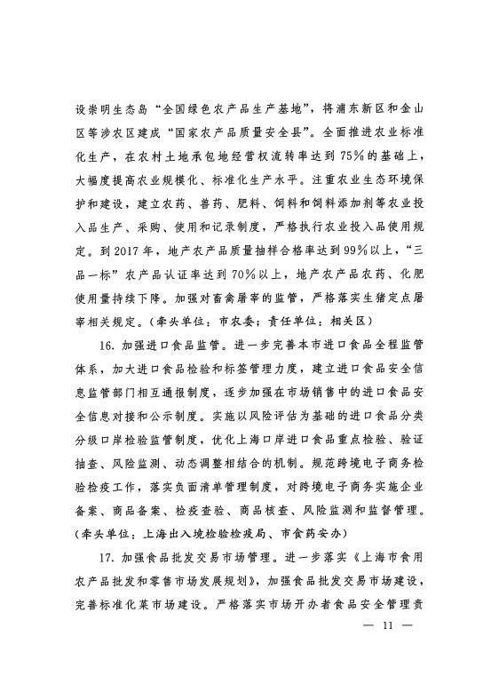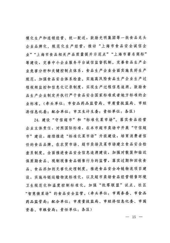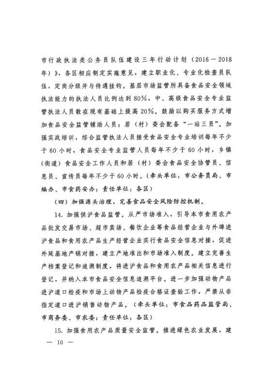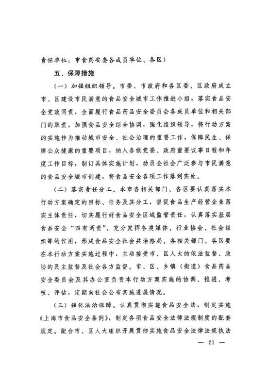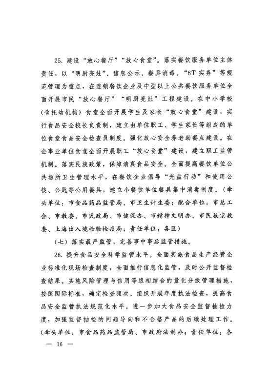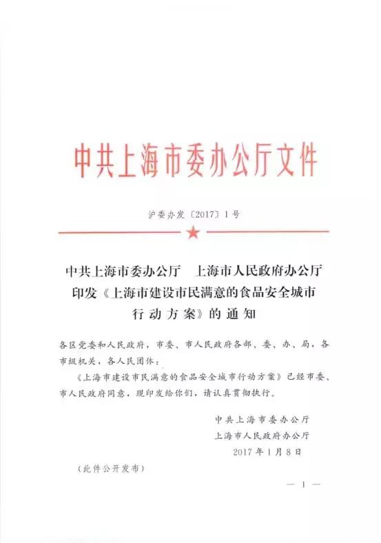 中共上海市委辦公廳 上海市人民政府辦公廳印發《上海市建設市民滿意的食品安全城市行動方案》的通知