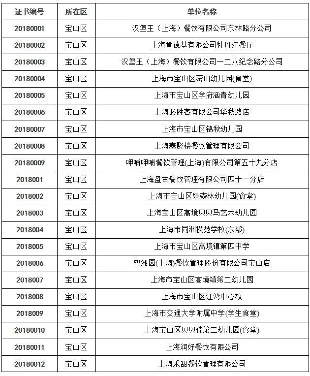 根據(jù)滬食藥監(jiān)餐飲〔2016〕367號,《上海市食品藥品監(jiān)督管理局關(guān)于進(jìn)一步推進(jìn)餐飲服務(wù)單位食品安全ABC規(guī)范化管理工作的通知》,2017年由第三方對餐飲服務(wù)單位開展ABC規(guī)范化管理現(xiàn)場檢查評估并經(jīng)有關(guān)部門核實(shí)審定,本市885家單位通過了達(dá)標(biāo)驗(yàn)收。現(xiàn)由上海市食品安全工作聯(lián)合會、市烹飪餐飲行業(yè)協(xié)會頒布證書。