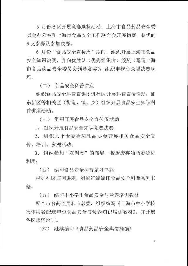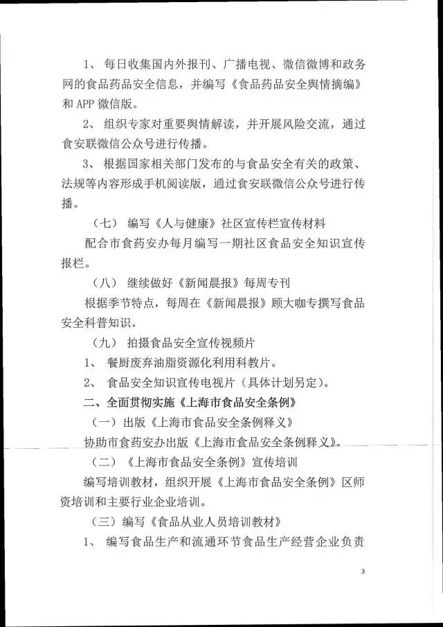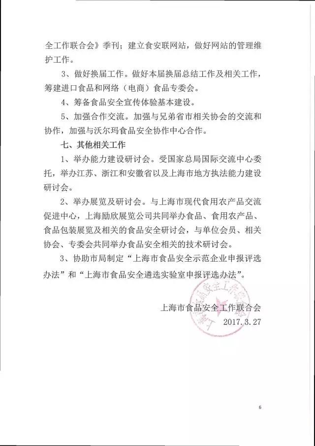 2017年上海市食品安全工作聯合會工作計劃